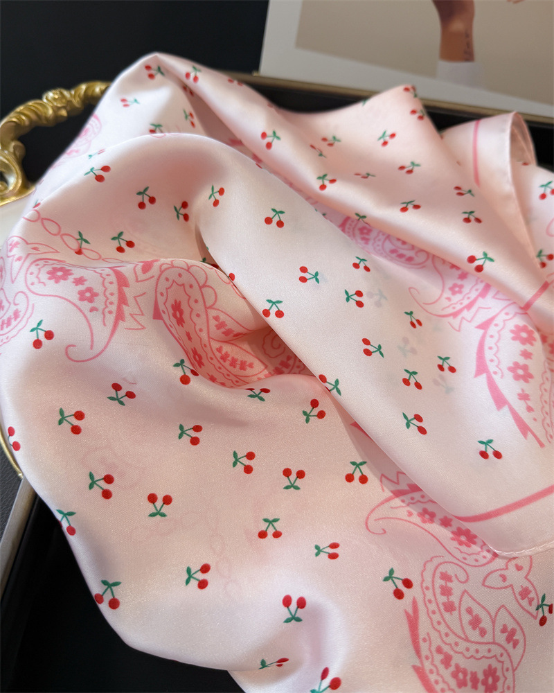 Khăn Lụa Vuông Họa Tiết Hoa Nhí & Paisley Hồng Pastel – Khăn Choàng Cổ Nữ Thanh Lịch- SKU: PKTT057-2